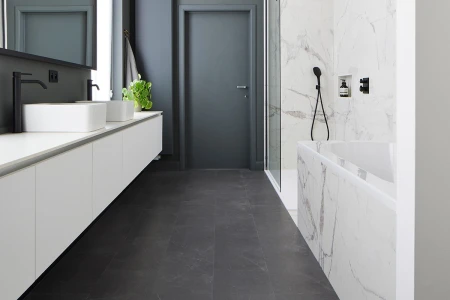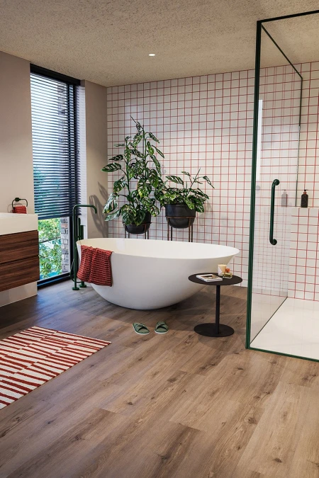 Łazienka to miejsce, w którym zaczynasz i kończysz dzień, gdzie przychodzisz, aby się odświeżyć lub po prostu całkowicie zrelaksować. Abyś mógł urządzić tę przestrzeń dokładnie tak, jak chcesz, oferujemy szeroki wybór opcji w zakresie naszych podłóg winylowych.