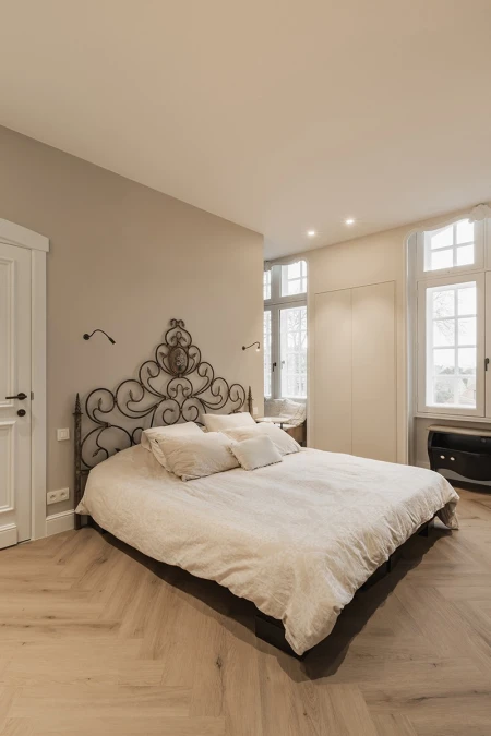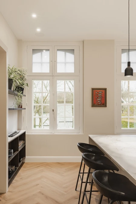 W rezultacie powstał dom, który emanuje urokiem i charakterem, ale jednocześnie jest całkowicie gotowy na przyszłość. Autentyczne elementy: wysokie sufity, ozdobne listwy i duże okna zostały starannie odrestaurowane. Jednocześnie dom został wyposażony w najnowsze technologie: ogrzewanie podłogowe, energooszczędna pompa ciepła i inteligentna automatyka domowa zapewniają niespotykane dotąd wrażenia mieszkaniowe.